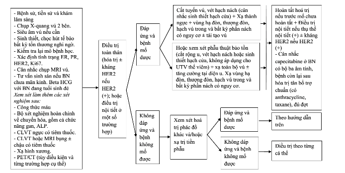 - Đối với các trường hợp ung thư vú được điều trị hóa chất tân bổ trợ, cần làm xét nghiệm mô bệnh học để đánh giá đáp ứng trên bệnh phẩm phẫu thuật.