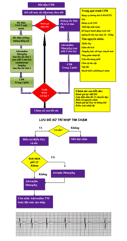 Sau 3 - 5 phút tim chưa đập lại: lập lại liều hai như trên hoặc gấp 10 lần, nhắc lại mỗi 3 – 5 phút.
