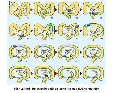 Nội soi bóng kép qua đường hậu môn, đưa máy qua đại tràng qua van hồi manh tràng đến vị trí ruột non quan sát tổn thương ở niêm mạc ruột non