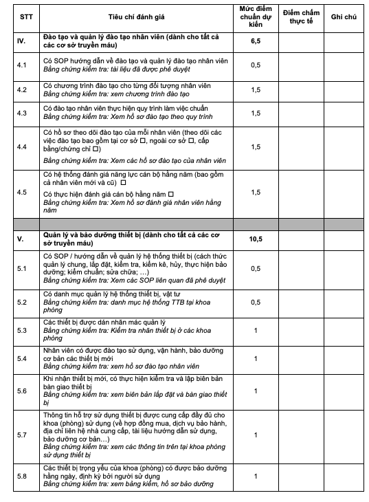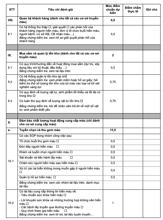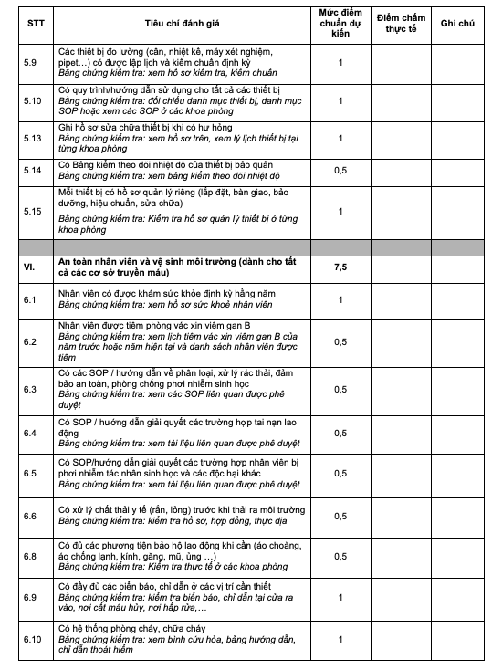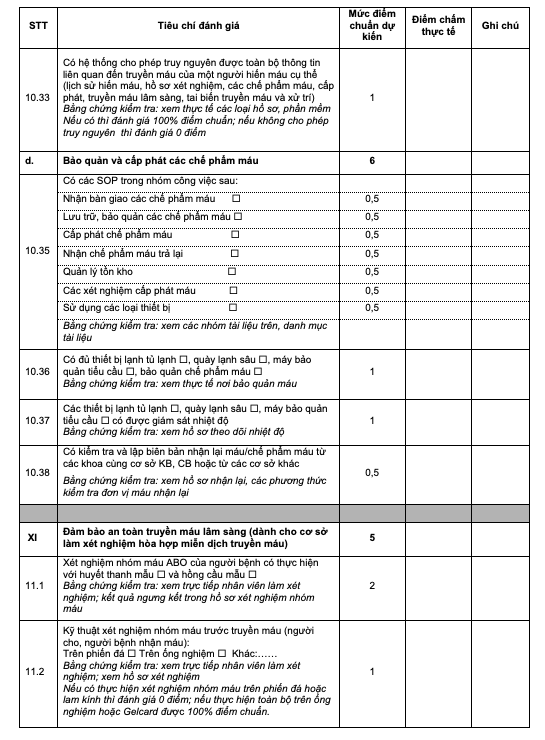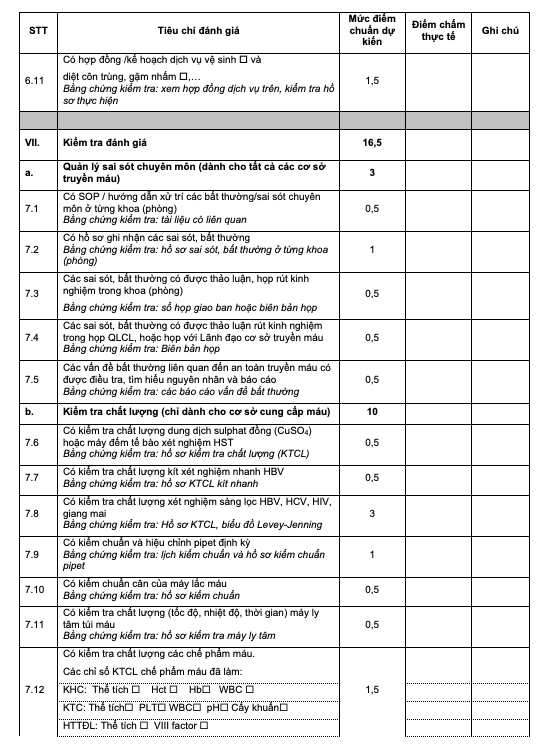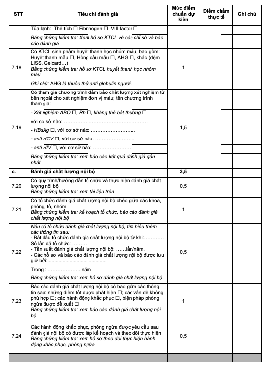 Đánh giá căn cứ vào bằng chứng cụ thể theo hướng dẫn kèm theo từng mục.