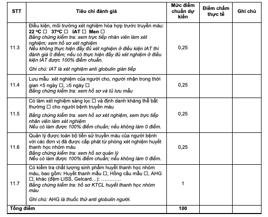 Cơ sở có cung cấp máu ngoại viện, có XN hoà hợp miến dịch truyền máu | Cơ sở có cung cấp máu ngoại viện, không XN hoà hợp miễn dịch truyền máu | Cơ sở không cung cấp máu ngoại viện, có XN hoà hợp miễn dịch truyền máu | |