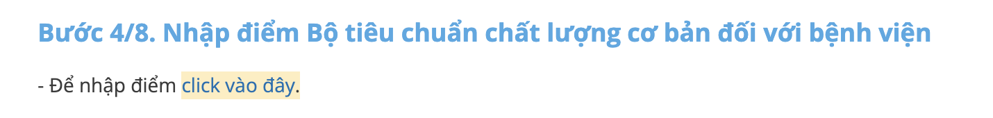 - Click vào link trong bước 4/8 để vào trang nhập điểm Đánh giá Bộ tiêu chuẩn chất lượng cơ bản.