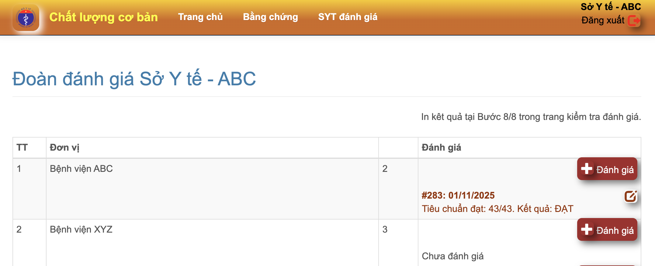 - Nếu đã đăng nhập, từ menu, click "SYT đánh giá".