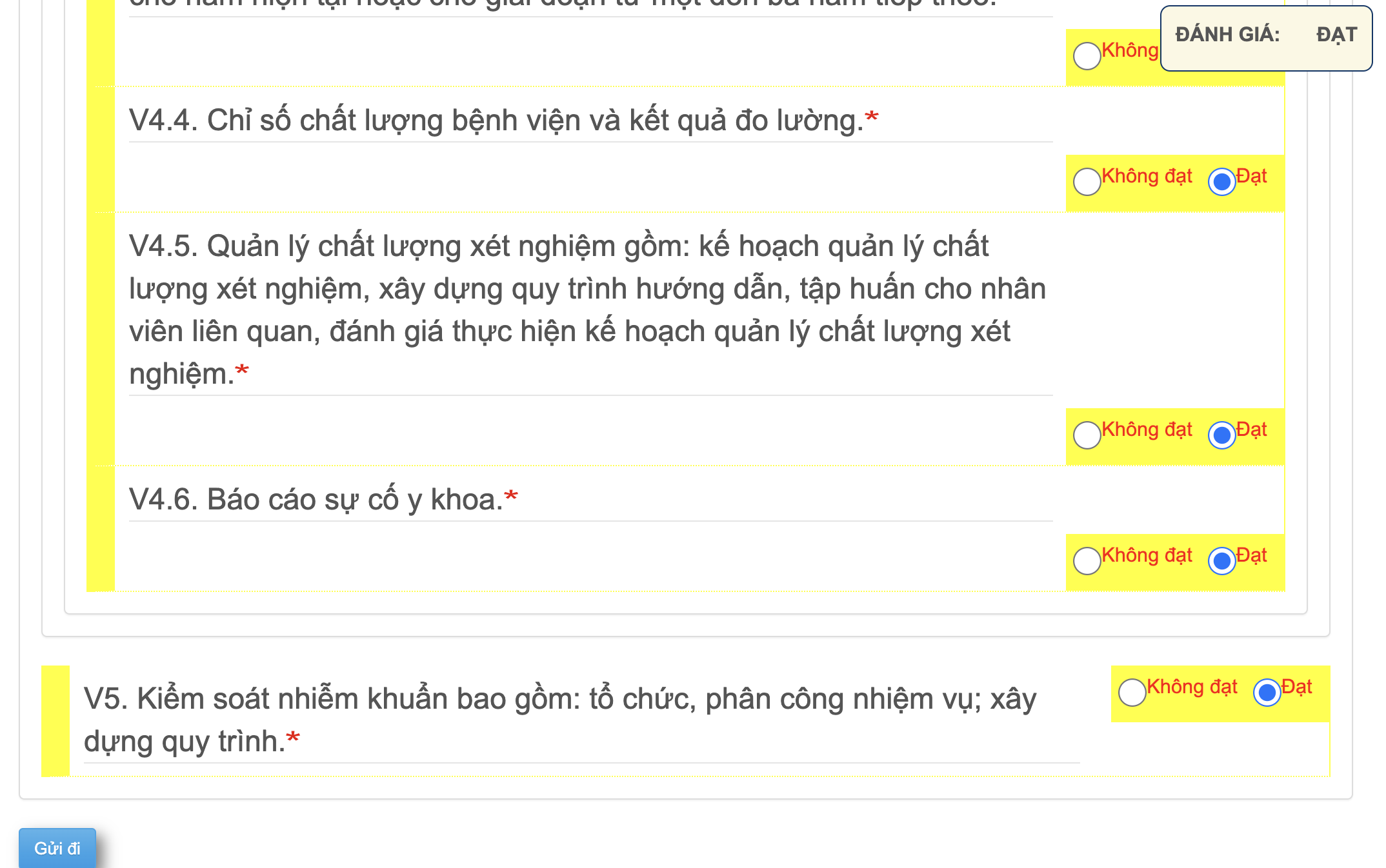 - Click gửi đi sau khi đã đánh giá xong các mục