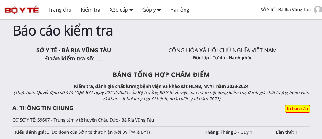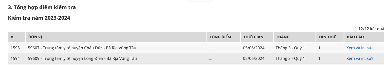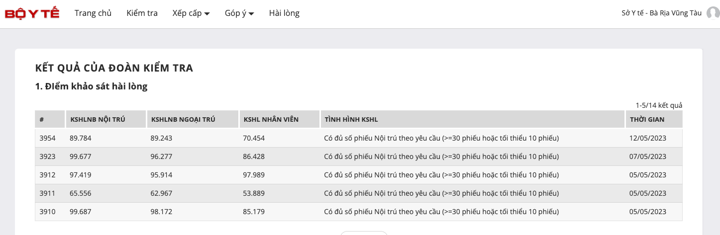 - Click vào "các lần kiểm tra" để vào trang "KẾT QUẢ CỦA ĐOÀN KIỂM TRA"