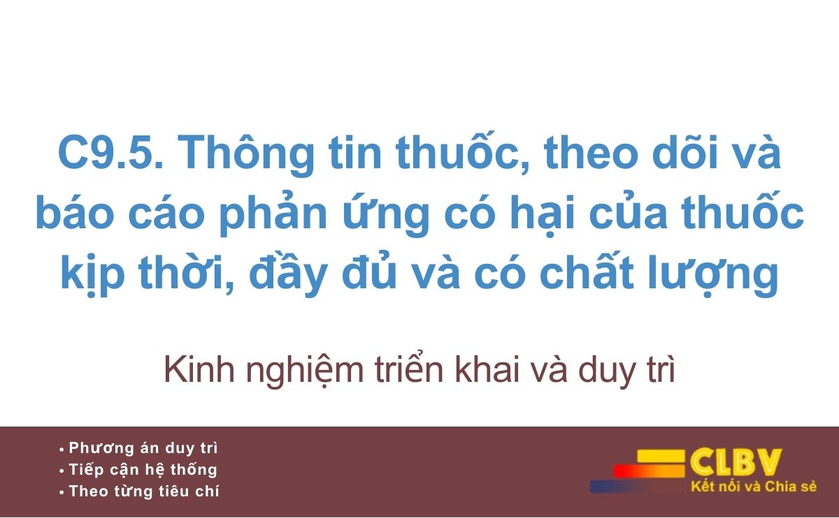 Tiêu chí C9.5 không chỉ yêu cầu bệnh viện “có báo cáo phản ứng có hại của thuốc”, mà yêu cầu thiết lập và vận hành được một hệ thống thông tin thuốc và cảnh giác dược hoạt động thực chất, góp phần bảo đảm sử dụng thuốc an toàn và nâng cao chất lượng điều trị.