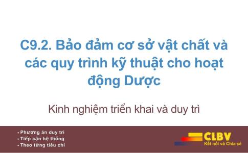 C9.2. Bảo đảm cơ sở vật chất và các quy trình kỹ thuật cho hoạt động Dược
