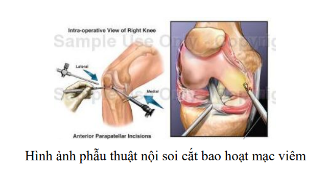 Hình ảnh phẫu thuật nội soi cắt bao hoạt mạc viêm.
