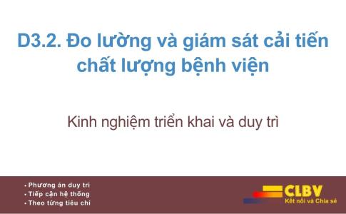 Nếu tiêu chí D3.1 giúp bệnh viện biết mình đang ở đâu, thì tiêu chí D3.2 giúp bệnh viện biết mình có đang tiến bộ hay không. Đây là tiêu chí chuyển trọng tâm từ đánh giá định kỳ sang theo dõi liên tục, từ cải tiến dựa trên cảm nhận sang cải tiến dựa trên dữ liệu.