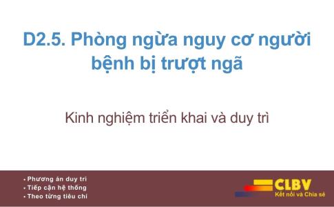 Trượt ngã là một trong những sự cố phổ biến nhất trong bệnh viện, nhưng lại thường bị coi là “tai nạn ngoài ý muốn” thay vì một nguy cơ có thể dự đoán và phòng ngừa. D2.5 được xây dựng nhằm thay đổi cách nhìn này, khẳng định rằng trượt ngã là một sự cố an toàn người bệnh có thể kiểm soát.