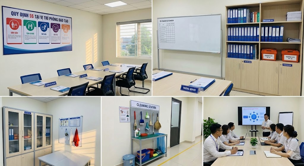 Để duy trì sự đồng bộ và sẵn sàng cho mọi buổi học, tài liệu “Quy định 5S tại vị trí Phòng đào tạo” được xây dựng như một hướng dẫn chuẩn, giúp đảm bảo phòng đào tạo luôn đạt tiêu chuẩn về bố trí, vệ sinh, an toàn và tình trạng sẵn sàng của thiết bị. Đây là nền tảng quan trọng để triển khai mô hình đào tạo y tế hiện đại, chuyên nghiệp.