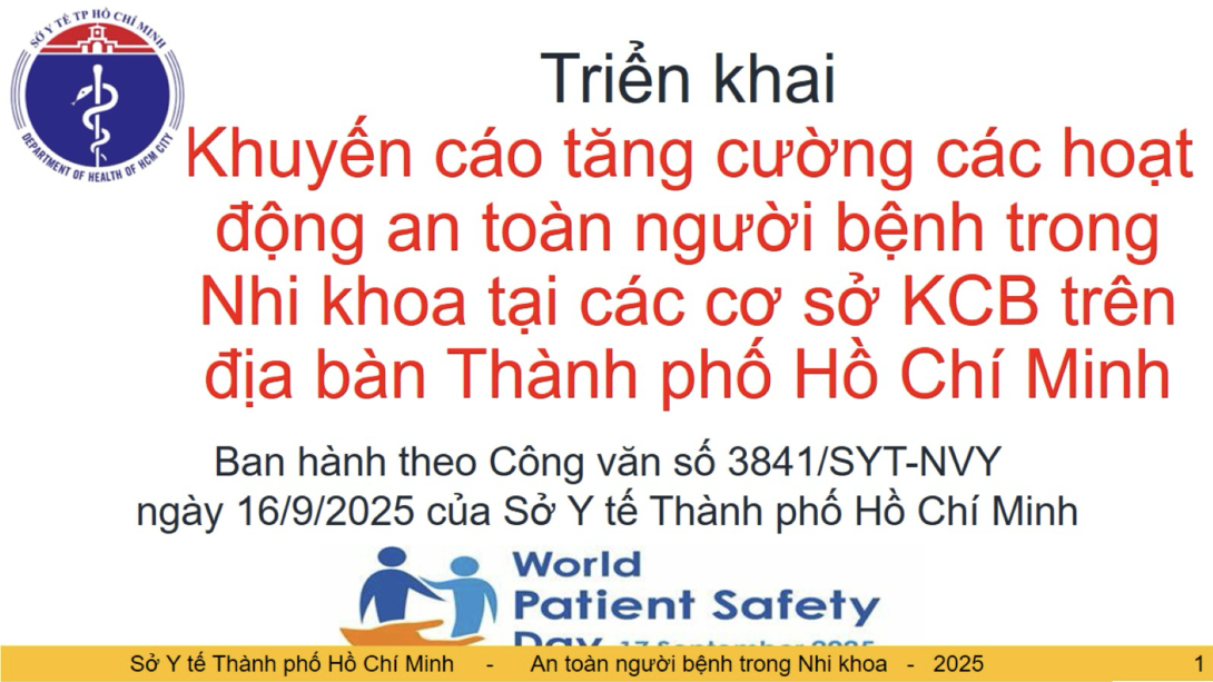 “Triển khai khuyến cáo tăng cường các hoạt động an toàn người bệnh trong Nhi khoa tại các cơ sở khám chữa bệnh trên địa bàn TP. Hồ Chí Minh”.