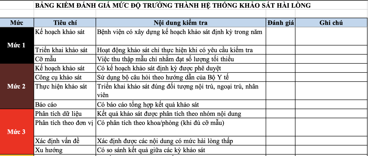 Bảng kiểm đánh giá sự trưởng thành của Hệ thống kháo sát hài lòng của bệnh viện