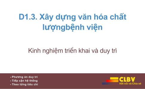 · Văn hóa chất lượng và uy tín cần thời gian lâu dài để xây dựng và bồi đắp, tạo nên y hiệu và sức hút cho bệnh viện, là yếu tố sống còn tác động đến sự tồn tại và phát triển của bệnh viện.