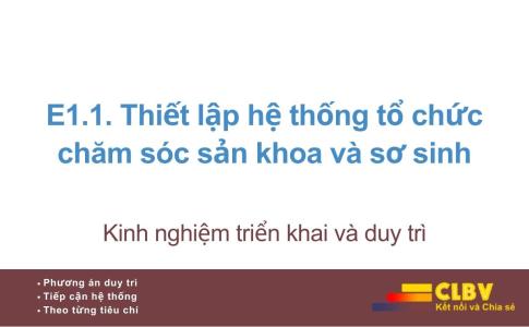 E1.1. Thiết lập hệ thống tổ chức chăm sóc sản khoa và sơ sinh