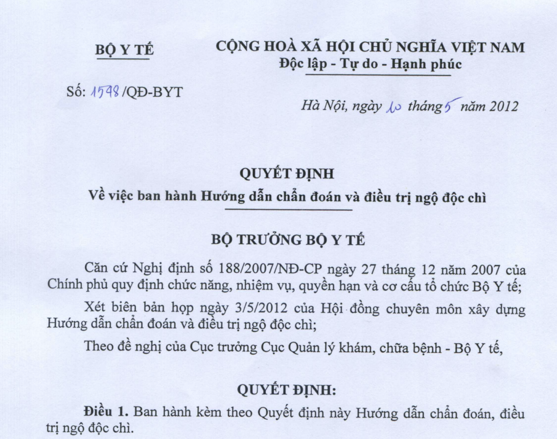 VỀ VIỆC BAN HÀNH HƯỚNG DẪN CHẨN ĐOÁN VÀ ĐIỀU TRỊ NGỘ ĐỘC CHÌ