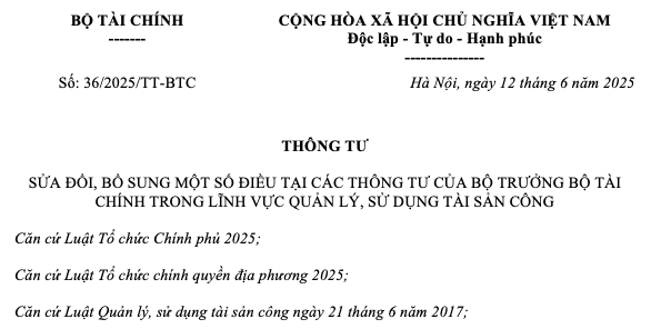 Thông tư 36/2025/TT-BTC sửa đổi các Thông tư của Bộ trưởng Bộ Tài chính trong lĩnh vực quản lý, sử dụng tài sản công