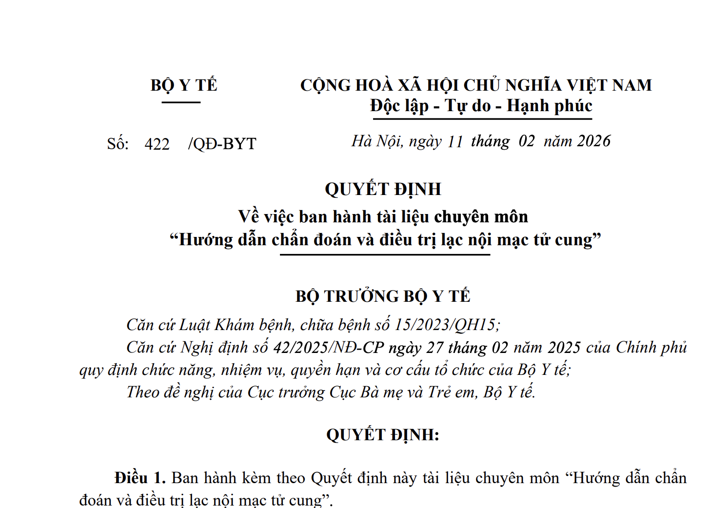 Số: 422/QĐ-BYT | Hà Nội, ngày 11 tháng 02 năm 2026 |
