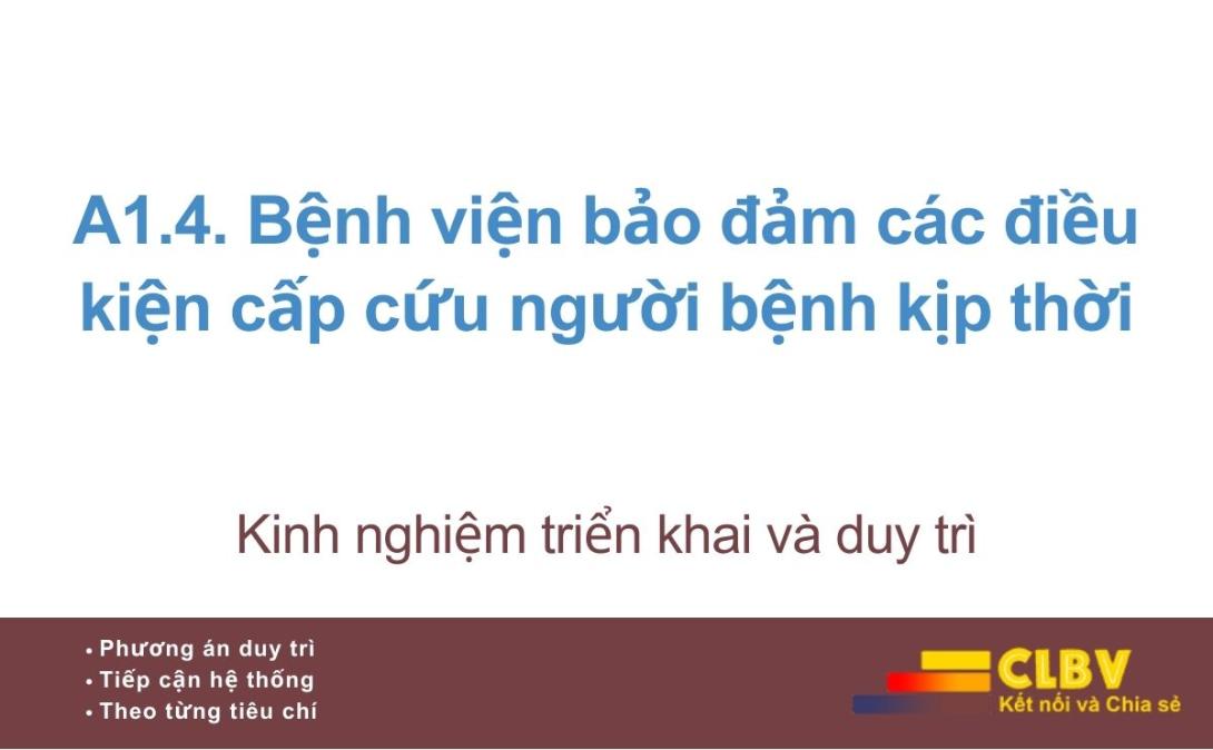 Tiêu chí A1.4 không chỉ đánh giá việc bệnh viện có khoa Cấp cứu hay không, mà đánh giá khả năng phản ứng nhanh và hiệu quả của toàn bệnh viện khi xuất hiện tình huống cấp cứu – bất kể người bệnh đang ở cổng, khu khám bệnh, khoa điều trị hay trong khuôn viên bệnh viện.