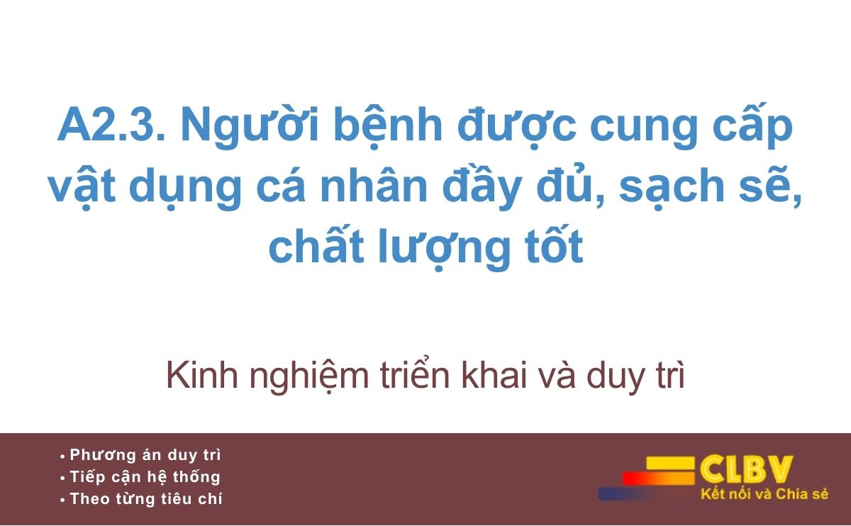 A2.3. Người bệnh được cung cấp vật dụng cá nhân đầy đủ, sạch sẽ, chất lượng tốt