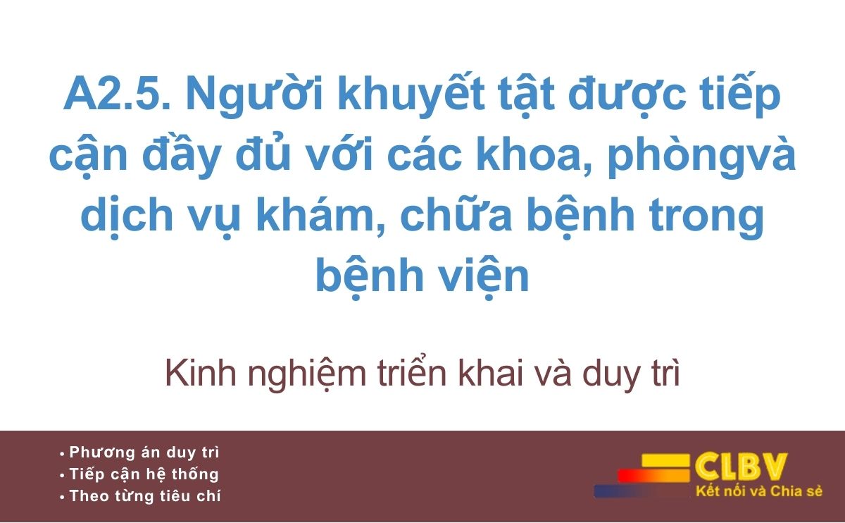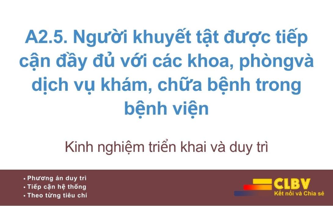 A2.5. Người khuyết tật được tiếp cận đầy đủ với các khoa, phòngvà dịch vụ khám, chữa bệnh trong bệnh viện