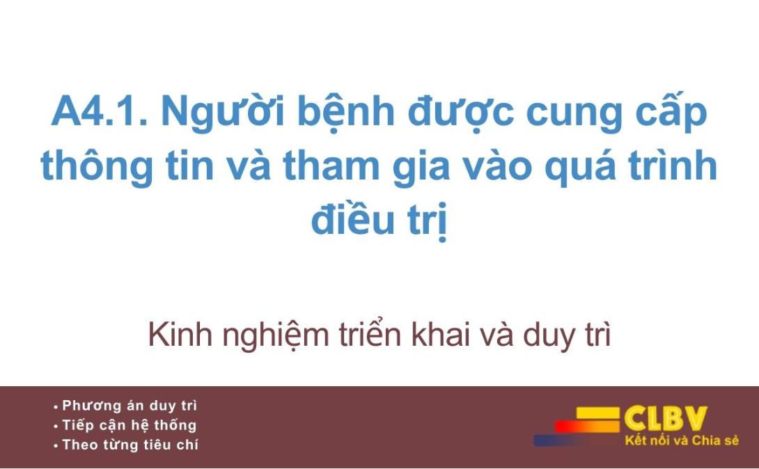 A4.1. Người bệnh được cung cấp thông tin và tham gia vào quá trình điều trị