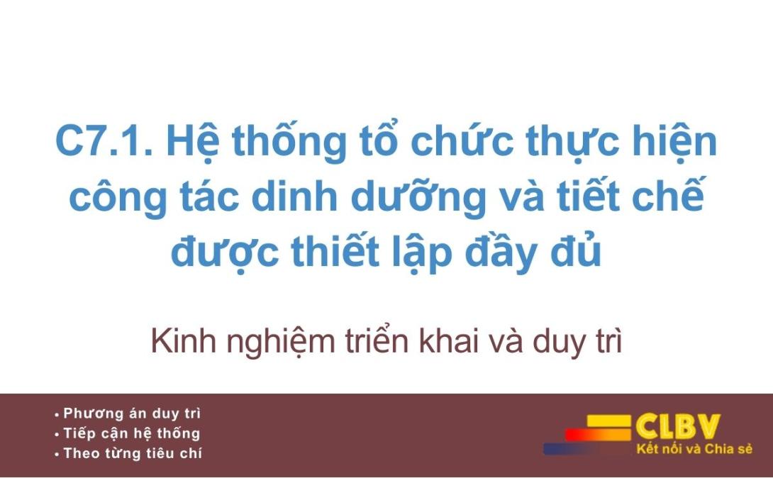 C7.1 là tiêu chí nền tảng của Chương C7. Nếu hệ thống tổ chức dinh dưỡng không được thiết lập đúng:
