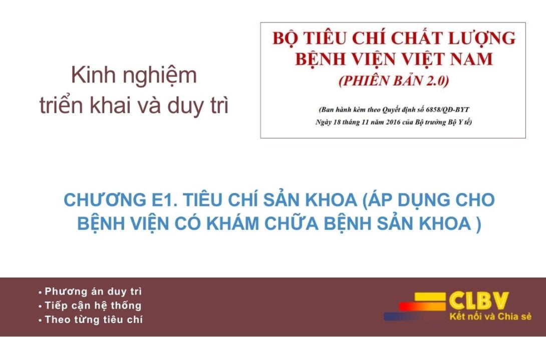 Nhìn tổng thể, Chương E1 không chỉ là bộ tiêu chí để chấm điểm hay đánh giá, mà là khung tham chiếu quan trọng cho chiến lược phát triển sản khoa của bệnh viện, góp phần bảo đảm an toàn người bệnh, nâng cao chất lượng chăm sóc bà mẹ – trẻ em và thực hiện hiệu quả các mục tiêu y tế công cộng trong giai đoạn hiện nay.
