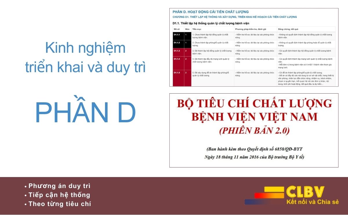 PHẦN D vì vậy không chỉ là phần “khó” của Bộ tiêu chí, mà chính là phần quyết định bệnh viện có thực sự bước vào con đường cải tiến chất lượng bền vững hay không.