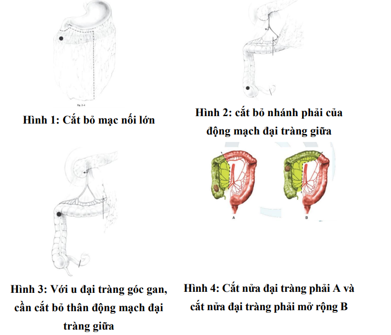 Phẫu thuật nội soi cắt đại tràng phải mở rộng bao gồm cắt bỏ các cuống mạch chi phối đại tràng phải theo kinh điển cộng với lấy bỏ nhánh phải của bó mạch đại tràng giữa, đảm bảo diện cắt cách khối u tối thiểu 5cm. Phẫu thuật cũng đảm bảo lấy bỏ được động mạch đại tràng giữa. Miệng nối được thực hiện giữa hồi tràng và đại tràng trái khi khối u nằm ở giữa đại tràng ngang.