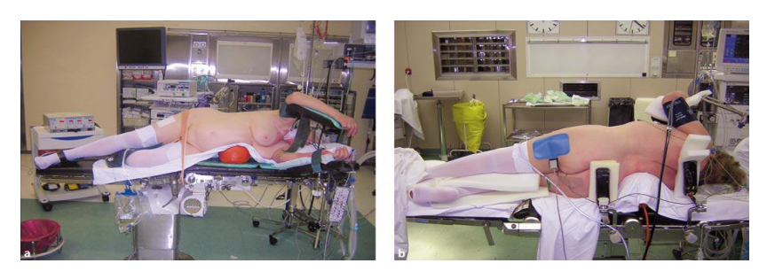 - Nghiêng người bệnh 90°, về đối diện bên nang thận; kê gối ở vùng hông bên dưới.