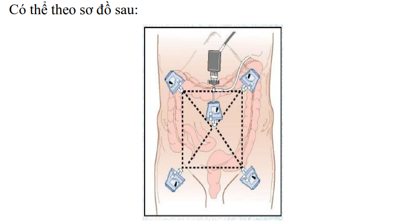 • Vị trí đặt trocar: Linh hoạt, tùy từng phẫu thuật viên.