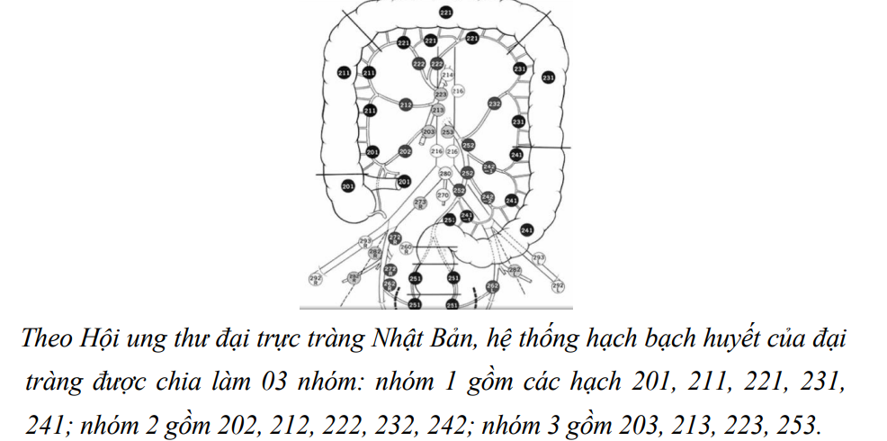 Do dẫn lưu bạch huyết của đại tràng và trực tràng đi theo các cuống mạch chính, do đó trong phẫu thuật cắt toàn bộ đại tràng các cuống mạch nuôi được thắt sát gốc.