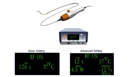 + Máy phát năng lượng sóng tần số radio phù hợp (kết nối được với ống thông điện cực theo từng hãng sản xuất). Vd. Hệ thống máy HAT-300 Smart Do hãng Osypka sản xuất, máy có công suất phát năng lượng tối đa là 75W, Có khả năng kiểm soát năng lượng và nhiệt độ với nhiều chế độ điều trị khác nhau.