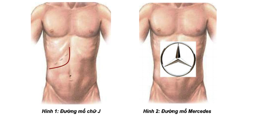 BƯỚC 1 - mở bụng: tùy theo thương tổn, chủ yếu mở đường dưới sườn mở rộng lên mũi ức hoặc đường chữ J.