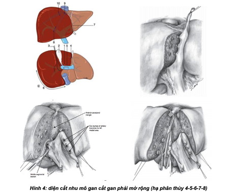 - Các cuống mạch lớn như cuống gan phải, cuống của hạ phân thùy 4, tĩnh mạch gan phải, tĩnh mạch gan giữa phải được khâu bằng chỉ Prolene 5.0 vắt 02 lớp.