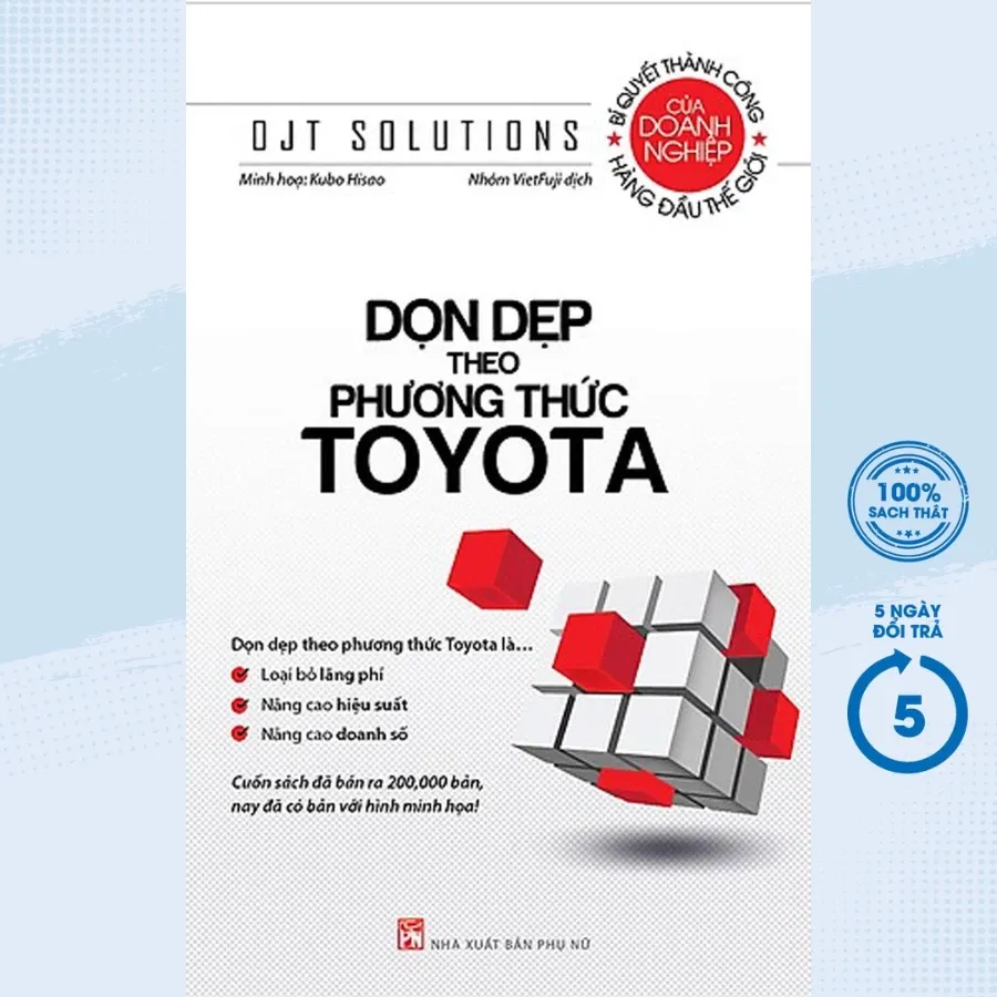 Phương thức sản xuất Toyota được tượng trưng bởi những khái niệm như Just In Time, Kanban, Kaizen. Phương thức này đã quá nổi tiếng khi chúng ta nhắc tới cái tên Toyota. Ở đâu đó vẫn có những suy nghĩ như “văn phòng của chúng tôi không thể bắt chước cách làm nơi công xưởng của Toyota được” hay “một số cá nhân có áp dụng đi chăng nữa thì cũng chẳng có ý nghĩa gì trong tổ chức”. Những suy nghĩ này là những điều ngộ nhận. Just In Time hay Kanban đúng là không phải cách làm mà ai cũng có thể bắt chước ngay được, nhưng dọn dẹp thì dù công ty nhỏ tới mấy, dù bạn làm việc gì đi chăng nữa thì đều có thể áp dụng ngay lập tức. Dọn dẹp theo phương thức Toyota không cần tới một hệ thống lớn, cũng không cần tiêu tốn nhiều kinh phí.