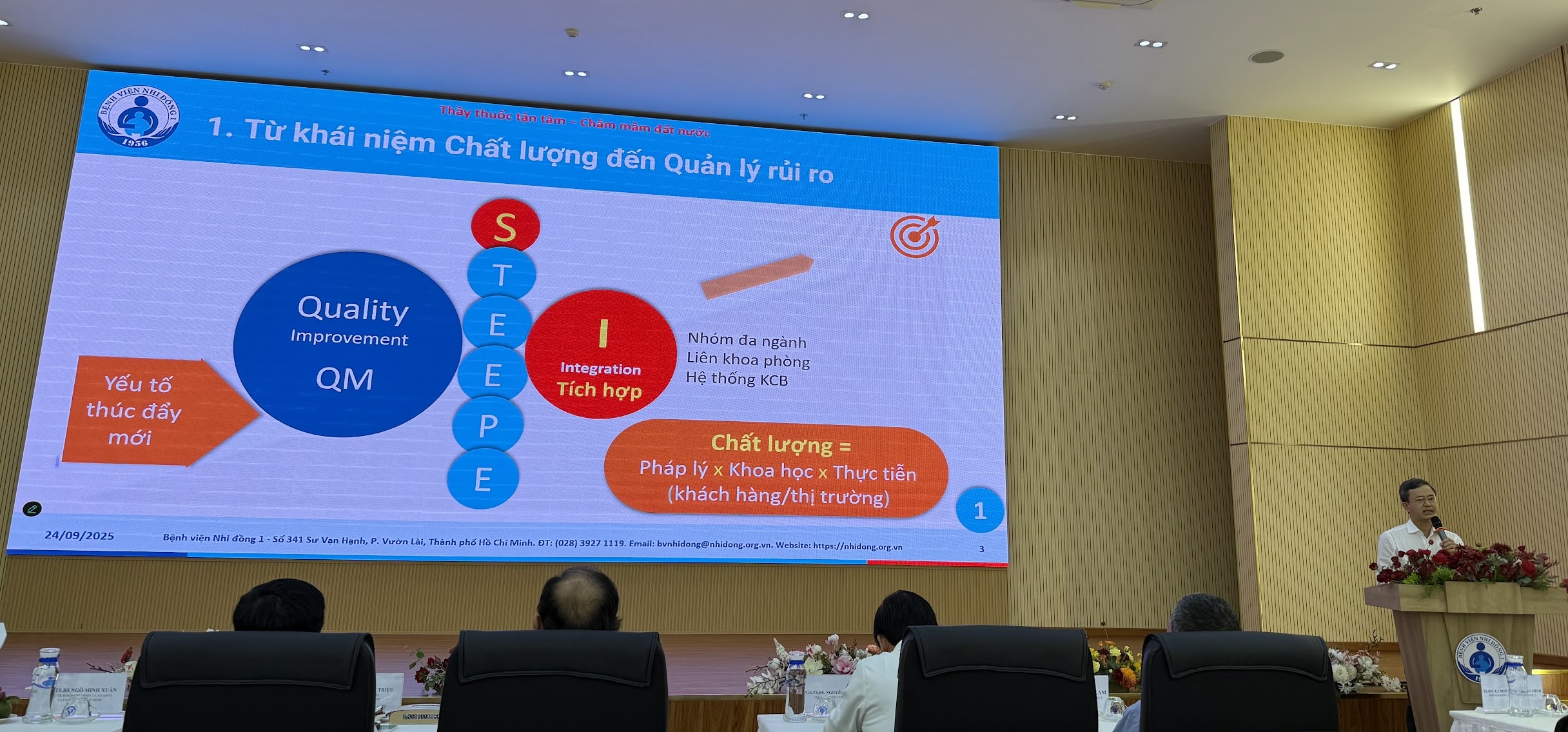 ThS. BS. Đỗ Văn Niệm, Trưởng phòng Quản lý chất lượng – Bệnh viện Nhi đồng 1, đã trình bày báo cáo đặc biệt: