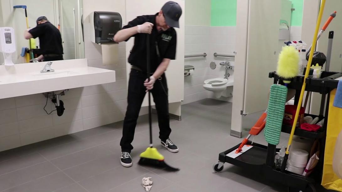 Vệ sinh bồn rửa, bồn cầu, thùng rác, sàn nhà theo tần suất chuẩn hóa.