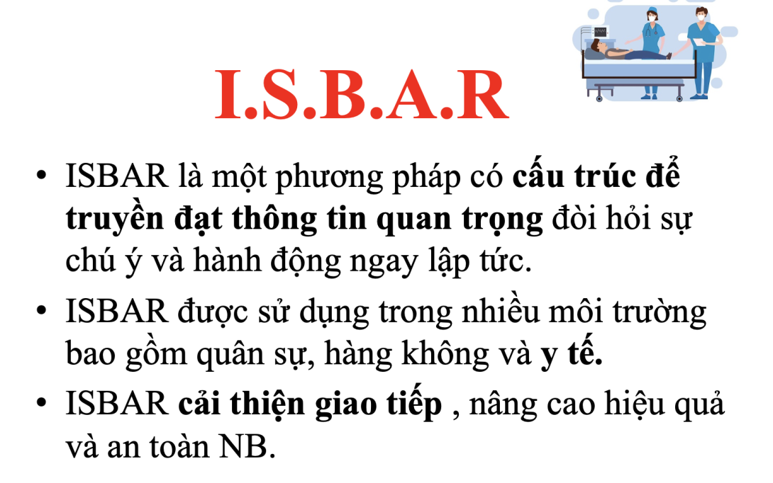 Việc triển khai ISBAR trong bệnh viện không chỉ giúp giảm sai sót, mà còn góp phần xây dựng một hệ thống chăm sóc an toàn – liên tục – chuyên nghiệp.