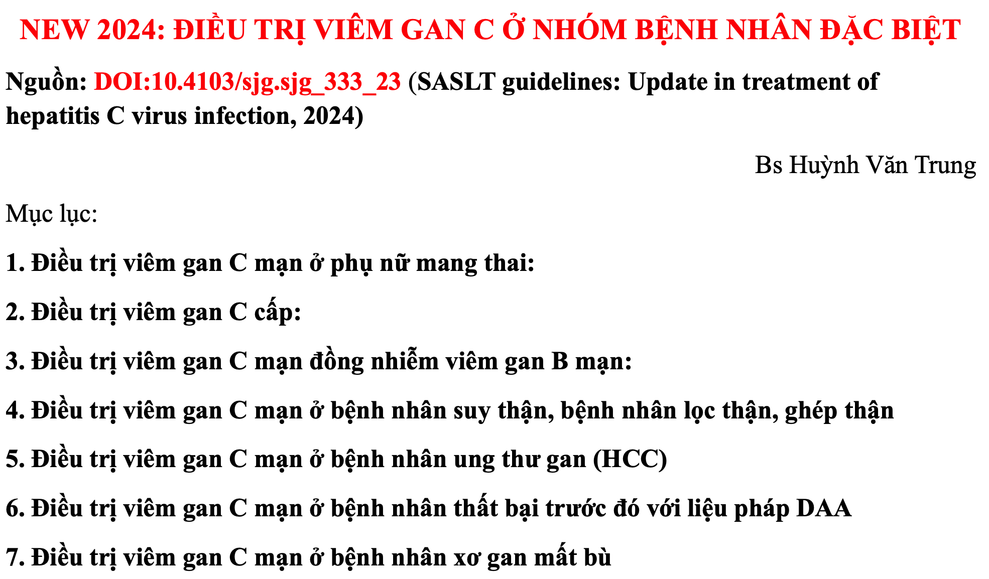 • Hiện tại ít nghiên cứu về mức độ an toàn và hiệu quả của liệu pháp DAA cho phụ nữ mang thai => chưa được chấp thuận cho điều trị viêm gan virus C mạn