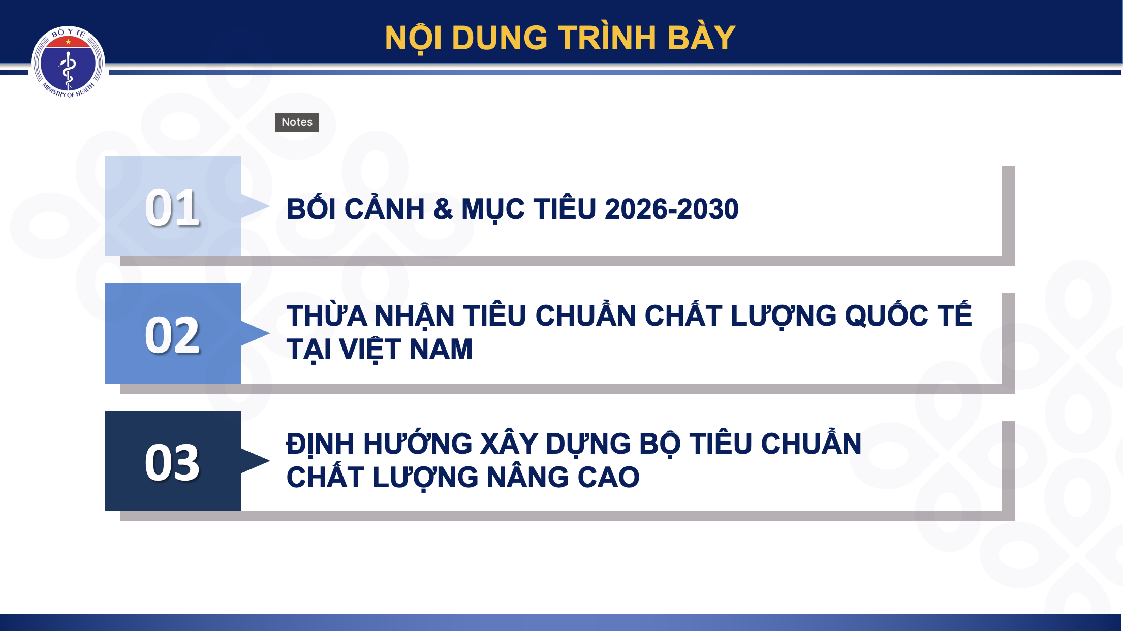 - Bộ Y tế đã thừa nhận các tiêu chuẩn quốc tế: