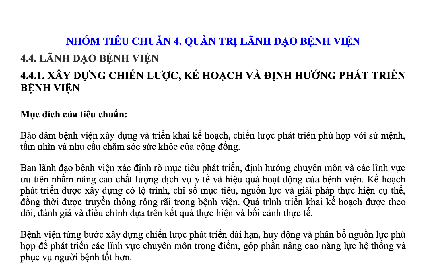Tiêu chuẩn 4.4 cho thấy một thay đổi rất rõ: Chất lượng bệnh viện không bắt đầu từ khoa phòng mà bắt đầu từ lãnh đạo bệnh viện