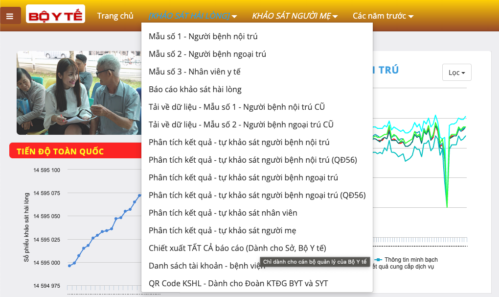 Cách 1. Tài khoản của Sở Y tế có quyền xem đầy đủ dữ liệu