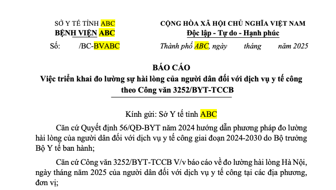 SYT có thể tham khảo Hướng dẫn báo cáo theo CV 3252 - Dành cho Bệnh viện để biết thêm về các chỉ số.