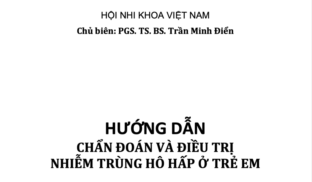 Năm 2024, Hội Nhi khoa Việt Nam tổ chức Hội đồng Chuyên gia biên soạn tài liệu “Hướng dẫn chẩn đoán và điều trị nhiễm trùng hô hấp ở trẻ em”. Ban biên soạn bao gồm các chuyên gia đầu ngành lĩnh vực Hô hấp, Hồi sức cấp cứu, Miễn dịch, Sơ sinh tại Việt Nam. Qua nhiều lần thảo luận, đây thực sự là tài liệu có giá trị, giúp các bác sĩ trong và ngoài chuyên ngành Nhi khoa tham khảo và triển khai thực tế. Xin cảm ơn các chuyên gia đã hết sức cố gắng và thực sự có trách nhiệm.