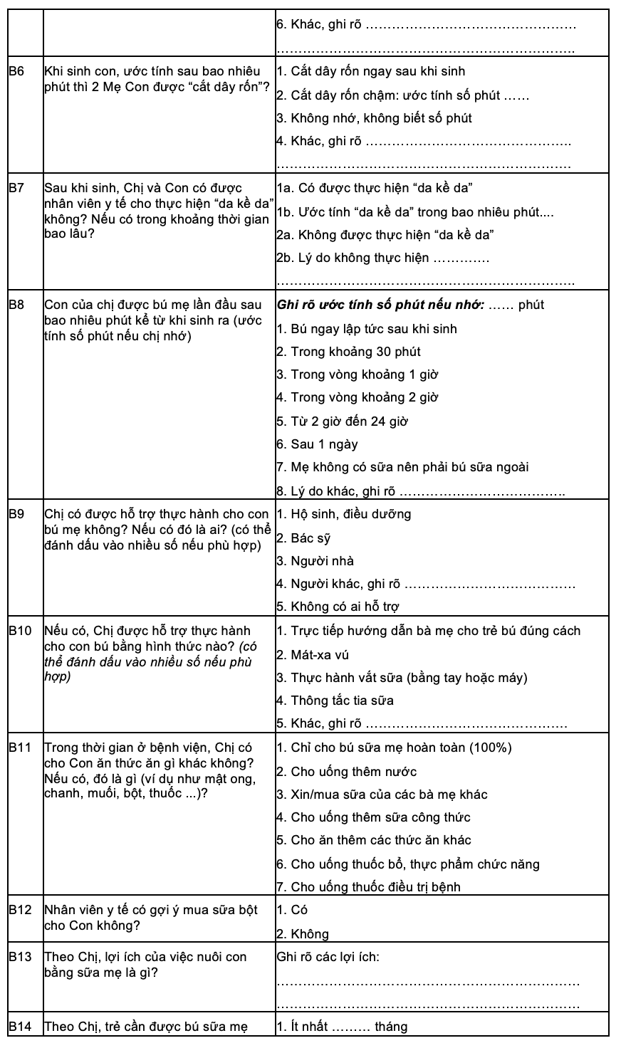 Phần B. Nội dung khảo sát tại bệnh viện