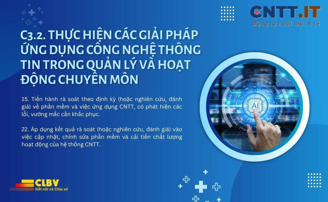 Tiểu mục 15 của C3.2 thực chất là đánh giá toàn diện hiệu quả hệ thống CNTT, không chỉ kiểm tra kỹ thuật mà phải bao phủ cả vận hành, dữ liệu và giá trị sử dụng trong quản lý. Nếu rà soát không đúng trọng tâm, bệnh viện dễ rơi vào kiểm tra hình thức (chỉ kiểm tra lỗi phần mềm).