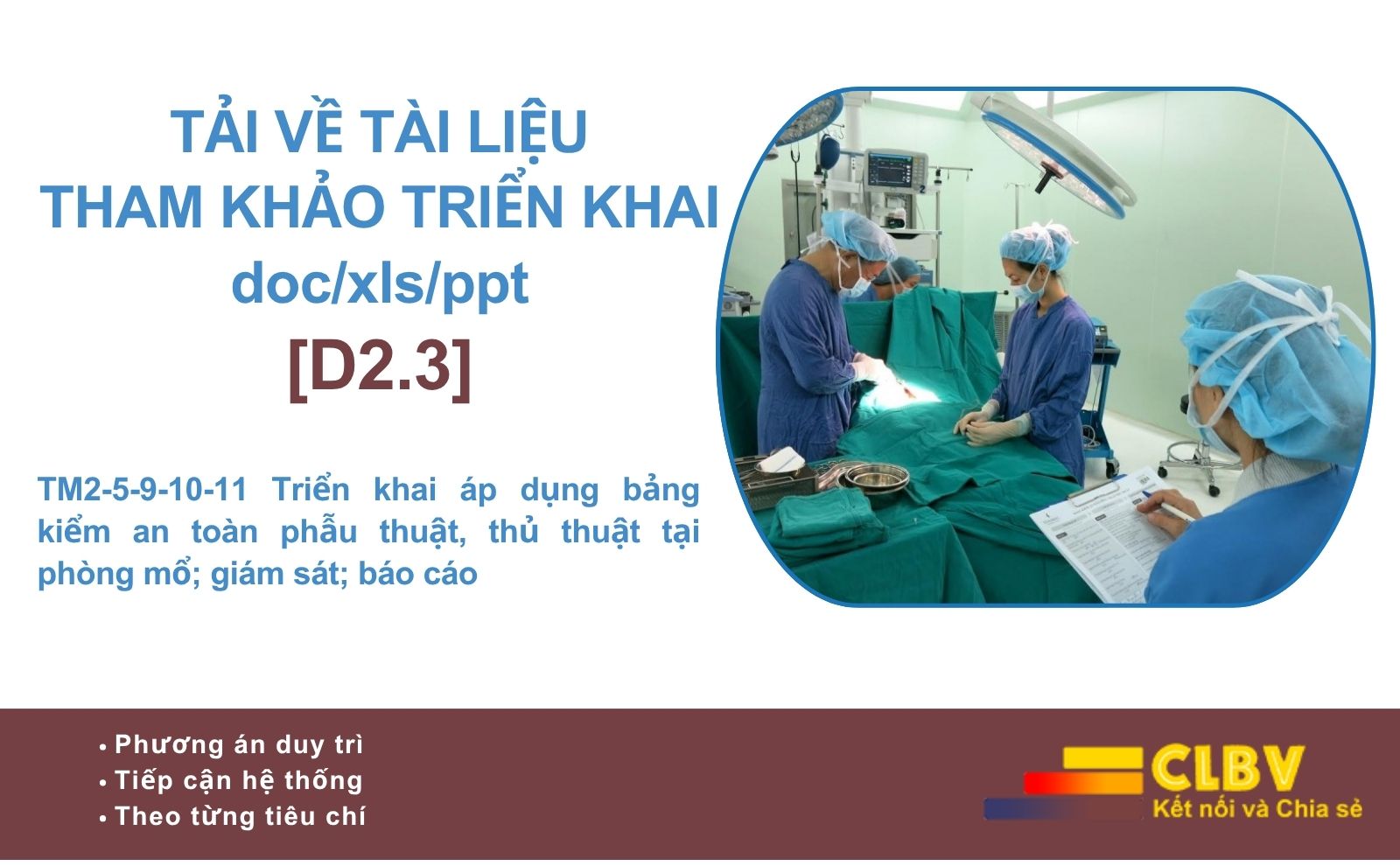 Phụ lục D2.3 - [Cách làm] TM2-5-9-10-11 Triển khai áp dụng bảng kiểm an toàn phẫu thuật, thủ thuật tại phòng mổ