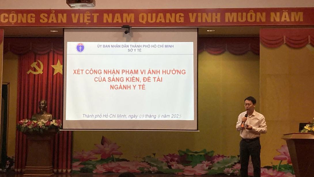 Báo cáo “Xét công nhận phạm vi ảnh hưởng của sáng kiến, đề tài ngành y tế” do Sở Y tế TP. Hồ Chí Minh biên soạn, được trình bày tại Hội nghị ngày 09/8/2025. Tài liệu nhằm hướng dẫn các cơ sở y tế, cán bộ, viên chức và người lao động trong ngành y thực hiện đúng quy định về việc xét công nhận sáng kiến, đề tài nghiên cứu khoa học, phục vụ công tác thi đua, khen thưởng và phát triển chuyên môn.